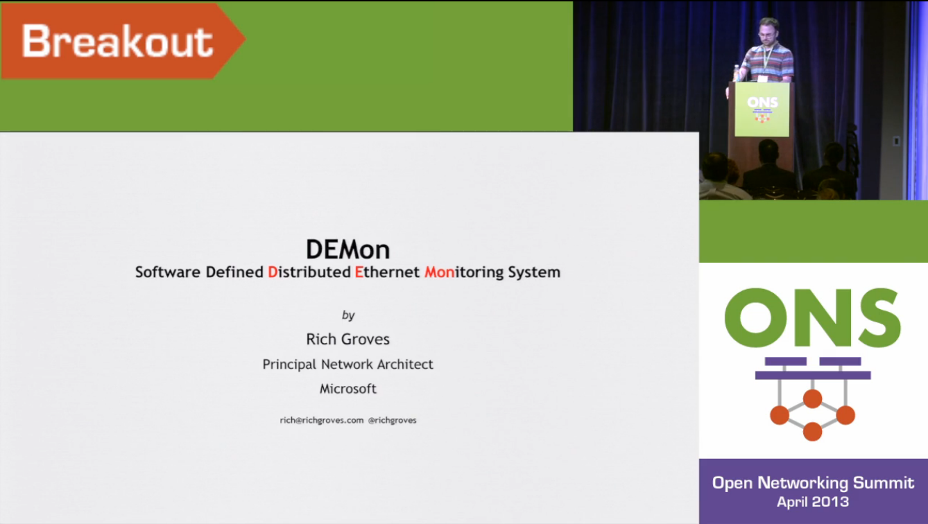Note: Lippis Report 207: The Killer SDN Applications: Network Virtualization and Visualization, describes network visualization as "an SDN killer application" and examines the impact this technology is having on incumbent vendors such as Gigamon, Ixia/Anue, VSS, cPacket, and NetScout.Rich's talk has already been covered in the news, Microsoft uses OpenFlow SDN for network monitoring and analysis. However, this article focusses on the Proactively Finding Interesting Traffic use case described near the end of the talk that hasn't seen much coverage. The use case is an interesting example of the combined use of OpenFlow and sFlow to dramatically increase to capabilities of the monitoring system.